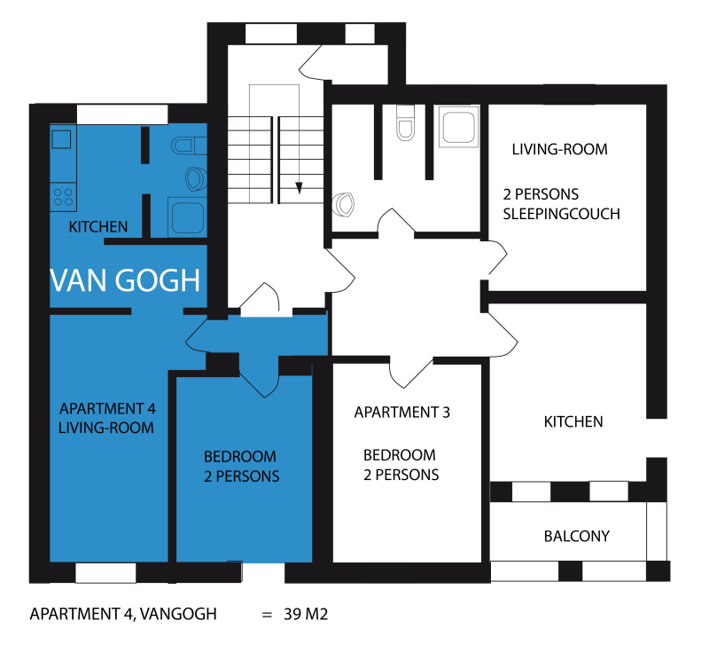 Alle appartementen zijn goed uitgerust. In de keuken is er een beschikbaar een fornuis, koelkast, magnetron. Verder is er genoeg service, servies, glazen, broodrooster en een Senseo of een Nespresso koffie machine.